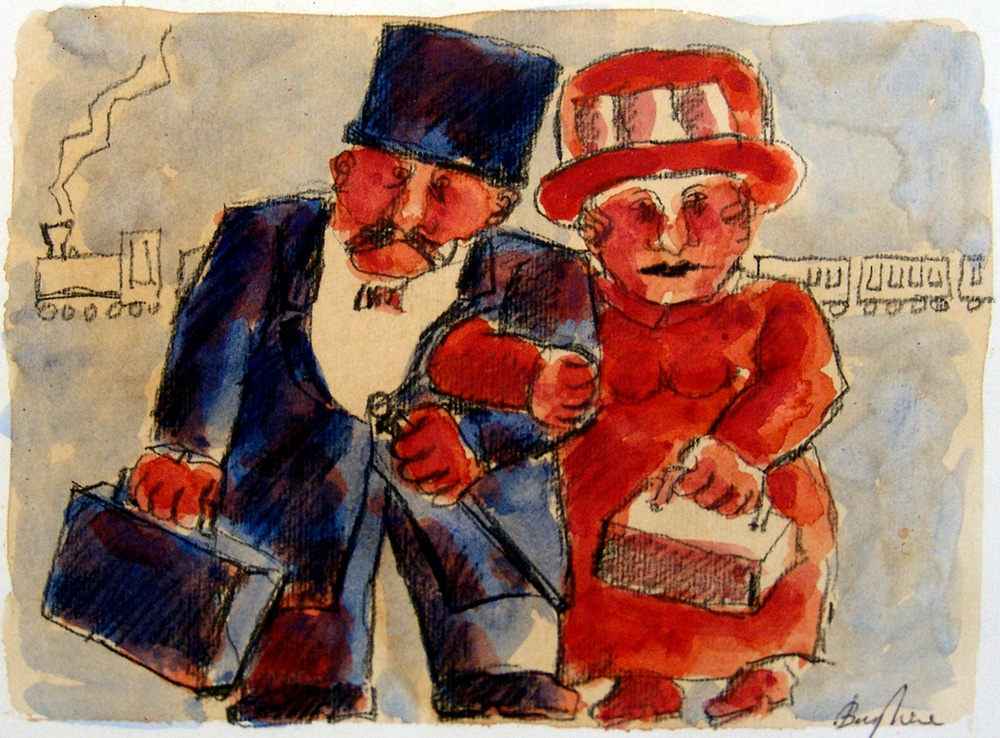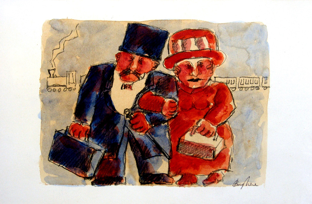 Franz Borghese 1941, Roma (Rm) - 2005, Roma (Rm) - [Italia] Viaggio in treno acquerello su cartoncino 25x35 cm firma dell'artista in basso a destra; opera con cornice certificato di autenticità dell'artista su fotografia; certificato di autenticità della Meeting Art di Vercelli