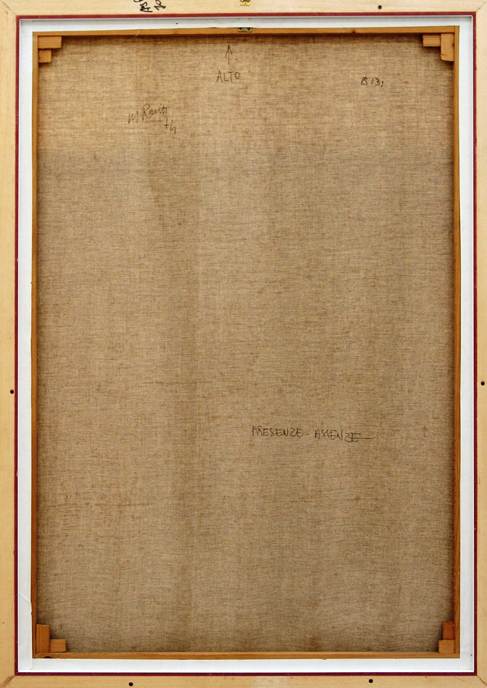 Mario Raciti 1934, Milano (Mi) - [Italia] Presenze-Assenze tecnica mista su tela 100x70 cm 1974 firma dell’artista sul retro; opera con cornice certificato di autenticità Picenum