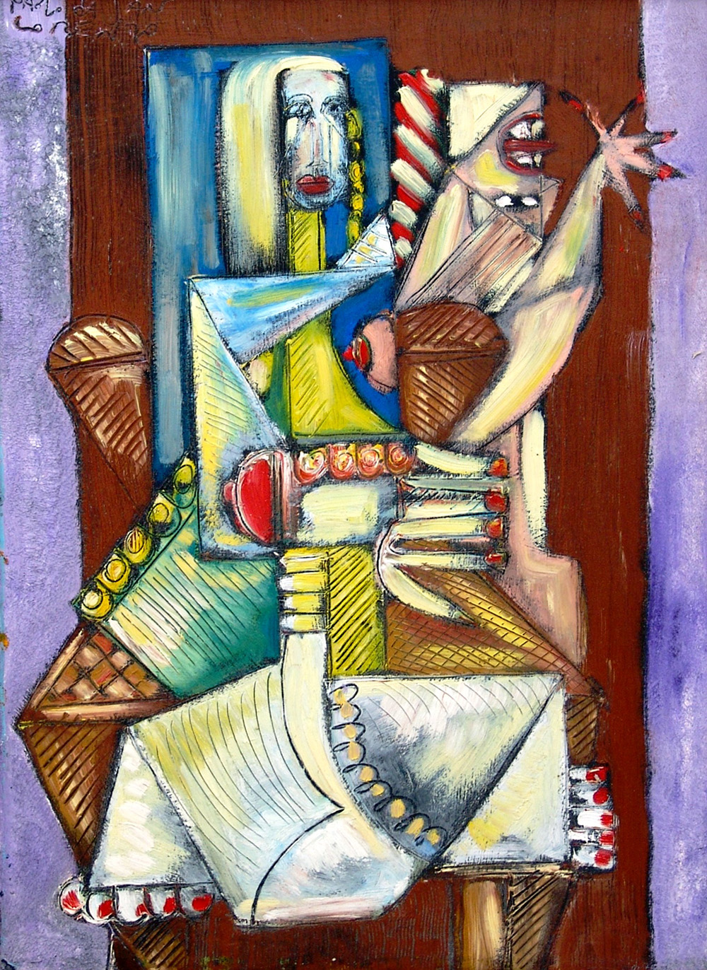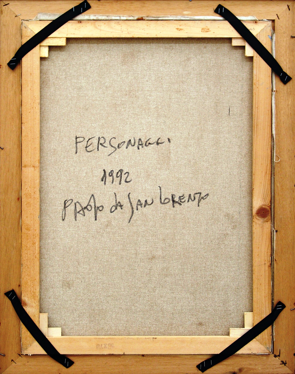 Paolo da San Lorenzo 1935, San Lorenzo in Campo (Pu) - [Italia] Personaggi olio su tela 70x50 cm 1992 firma dell’artista in alto a sinistra e sul retro; opera con cornice certificato di autenticità dell’artista su fotografia