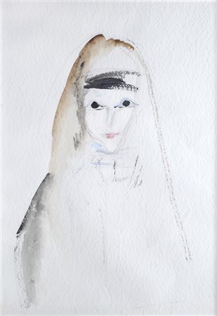 Ernesto Treccani (Milano, 1920 - 2009) Donna Tecnica mista su carta, cm. 75x53 Firma in basso a destra. € 350/450