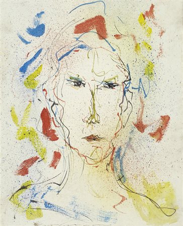 Ernesto Treccani (Milano, 1920 - 2009) Testina Olio su tela, cm. 30x20,3 Firma in basso a sinistra. Sul verso: scritta autografa "E. Treccani, opera mia". Autentica dell'autore su foto. € 400/800