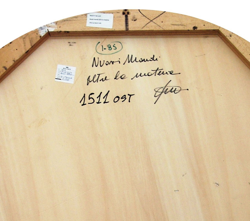 Pierluigi De Lutti 1959, Monfalcone (Go) - [Italia] Nuovi mondi - Oltre la materia olio su tavola circolare diametro 120 cm firma dell’artista sul retro certificato di autenticità dell’artista con archivio; opera pubblicata nel catalogo "Il simbolo, il tempo e la materia" a cura di Giacomo Belloni, edizione Real Arte