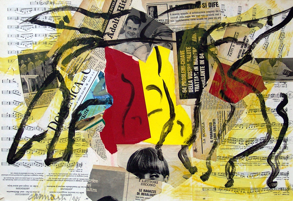Arturo Carmassi 1925, Lucca (Lu) - 2015, Empoli (Fi) - [Italia] senza titolo tecnica mista e collage su carta 50x70 cm 1986 firma dell'artista in basso a sinistra; opera con cornice certificato di autenticità dell’artista su fotografia