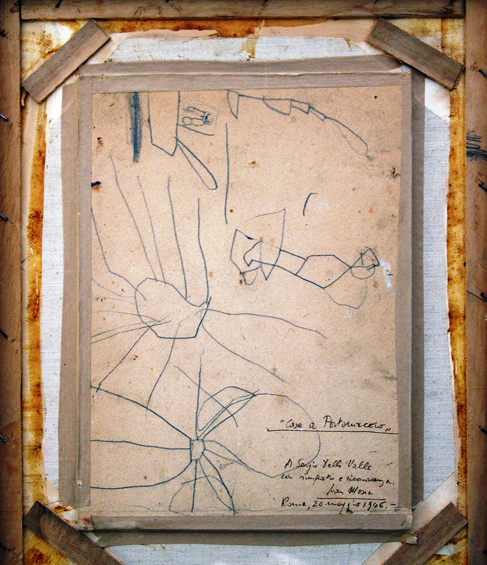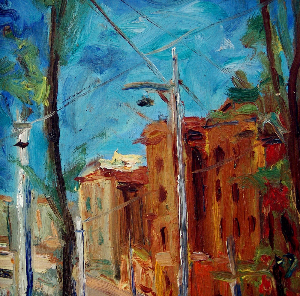 Ivan Mosca 1915, Parma (Pr) - 2005, Roma (Rm) - [Italia] Case a Portonaccio olio su cartoncino 35x26 cm 1945 firma dell'artista in basso a sinistra e sul retro; opera con cornice certificato di autenticità Picenum