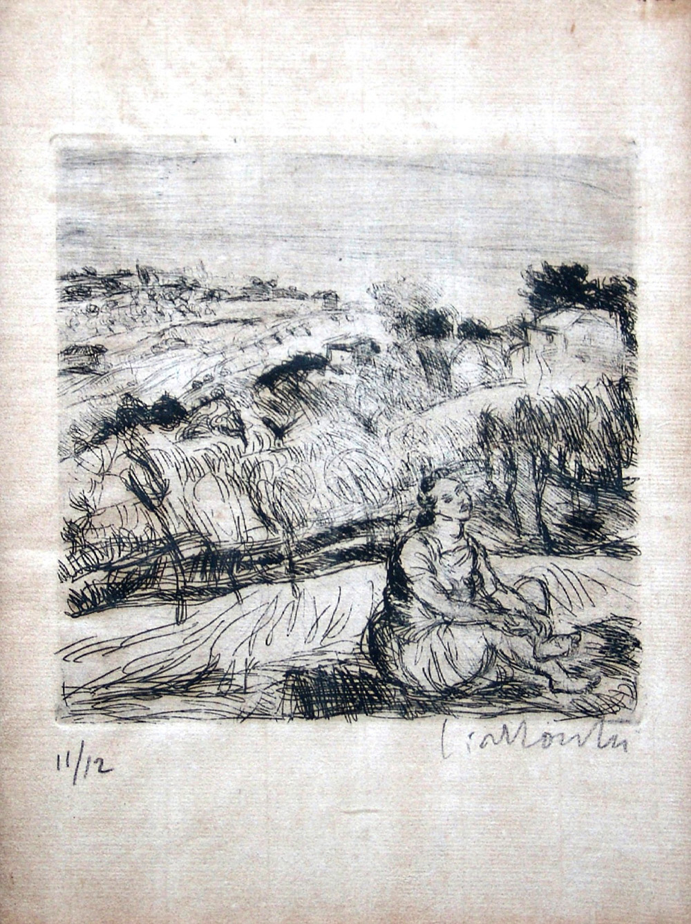 Arnoldo Ciarrocchi 1916, Civitanova Marche (Mc) - 2004, Civitanova Marche (Mc) - [Italia] Paesaggio acquaforte 30x20 cm 1943 es. 11/12; firma dell'artista in basso a destra e sul retro; opera con cornice certificato di autenticità Picenum