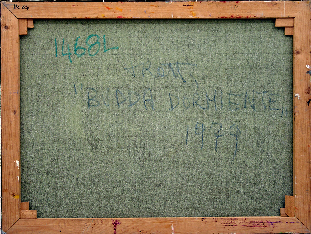 Sandro Trotti 1934, Monte Urano (Fm) - [Italia] Budda dormiente olio su tela 60x80 cm 1979 firma dell'artista sul retro; opera con cornice certificato di autenticità dell'artista su fotografia