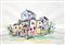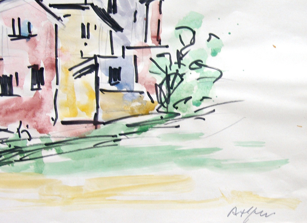 Attilio Alfieri 1904, Loreto (An) - 1992, Milano (Mi) - [Italia] Case acquerello su carta 35,5x50 cm firma dell’artista in basso a destra e sul retro; opera con cornice certificato di autenticità della Meeting Art di Vercelli