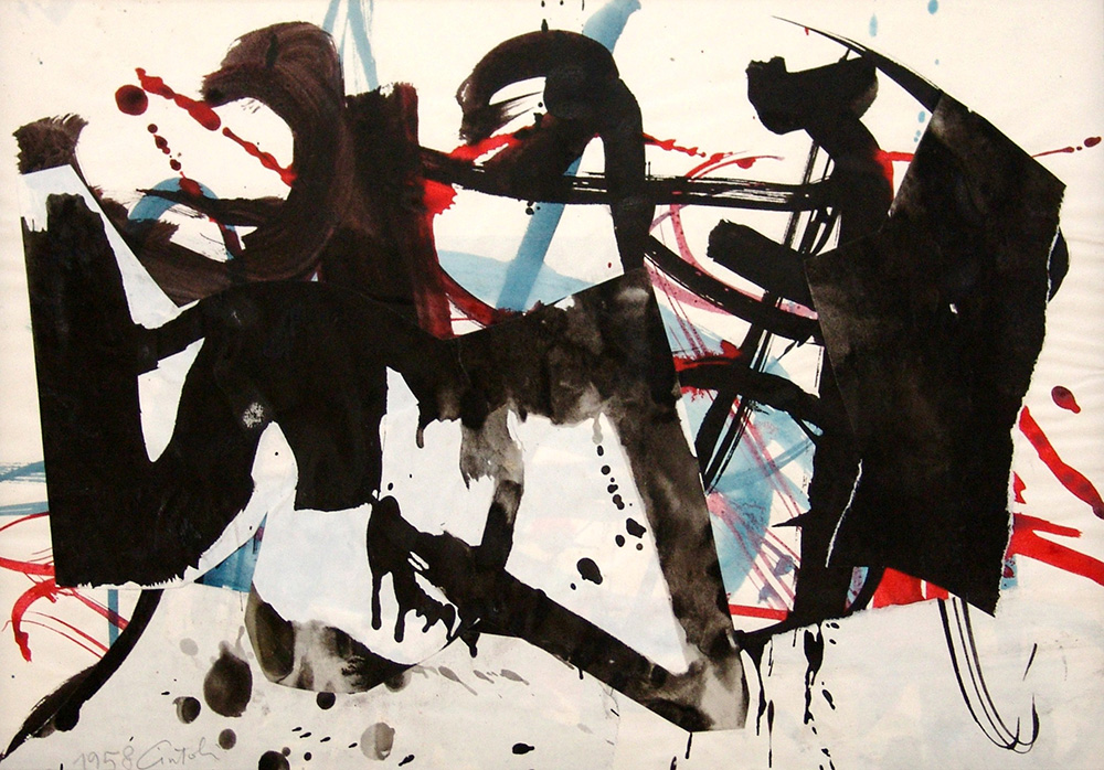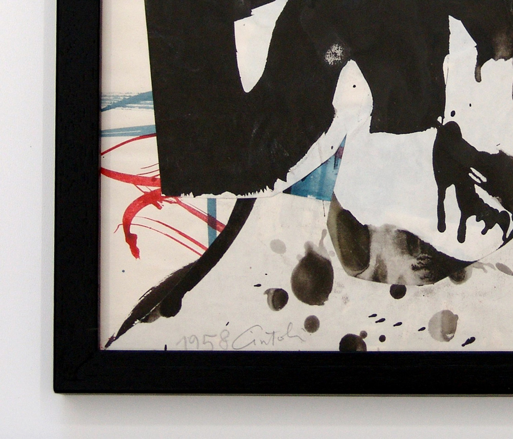 Claudio Cintoli 1935, Imola (Bo) - 1978, Roma (Rm) - [Italia] senza titolo tecnica mista su carta 25x35 cm 1958 firma dell'artista in basso a sinistra; opera con cornice certificato di autenticità di Vittorio Cintoli