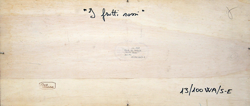 Ulisse 1957, Osimo (An) - [Italia] I frutti rossi olio su tavola 30x70 cm 2013 firma dell’artista in basso a destra; opera con cornice certificato di autenticità dell'artista con archivio