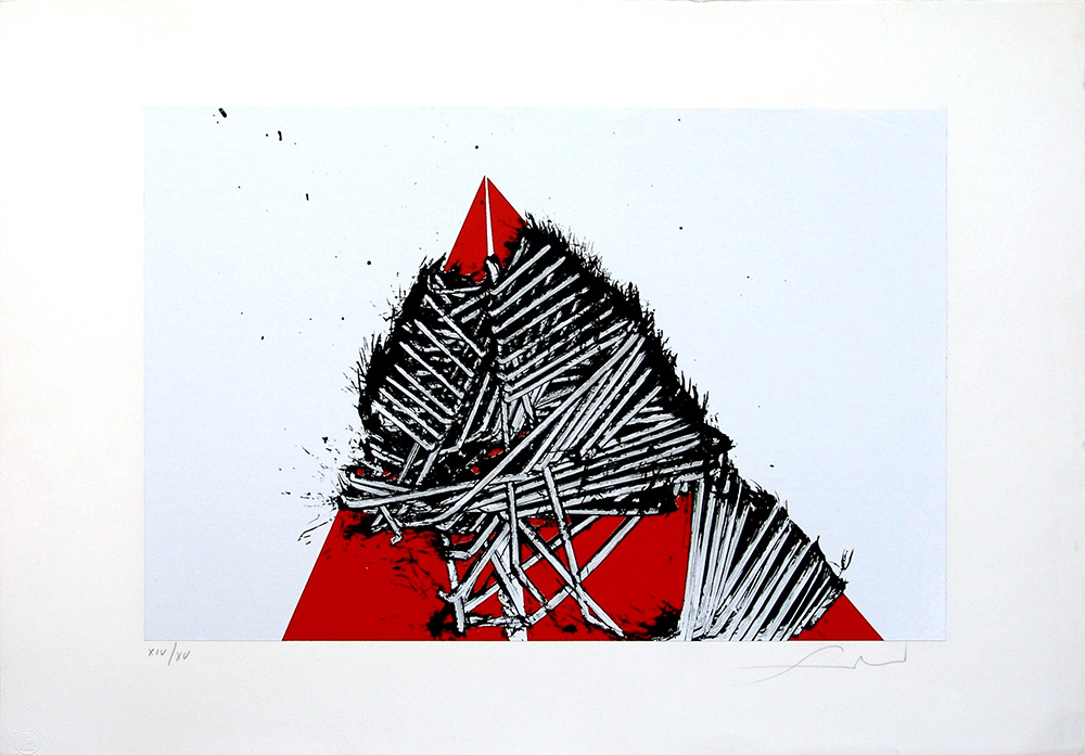 Emilio Scanavino 1922, Genova (Ge) - 1986, Milano (Mi) - [Italia] Il groviglio di Pitagora litografia 50x70 cm es. XIV/XV; firma dell’artista in basso a destra e timbro La Pergola di Pesaro in basso a sinistra certificato di autenticità Picenum