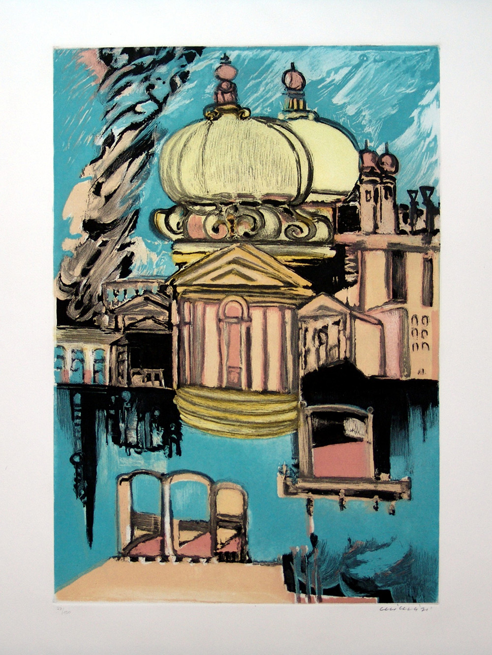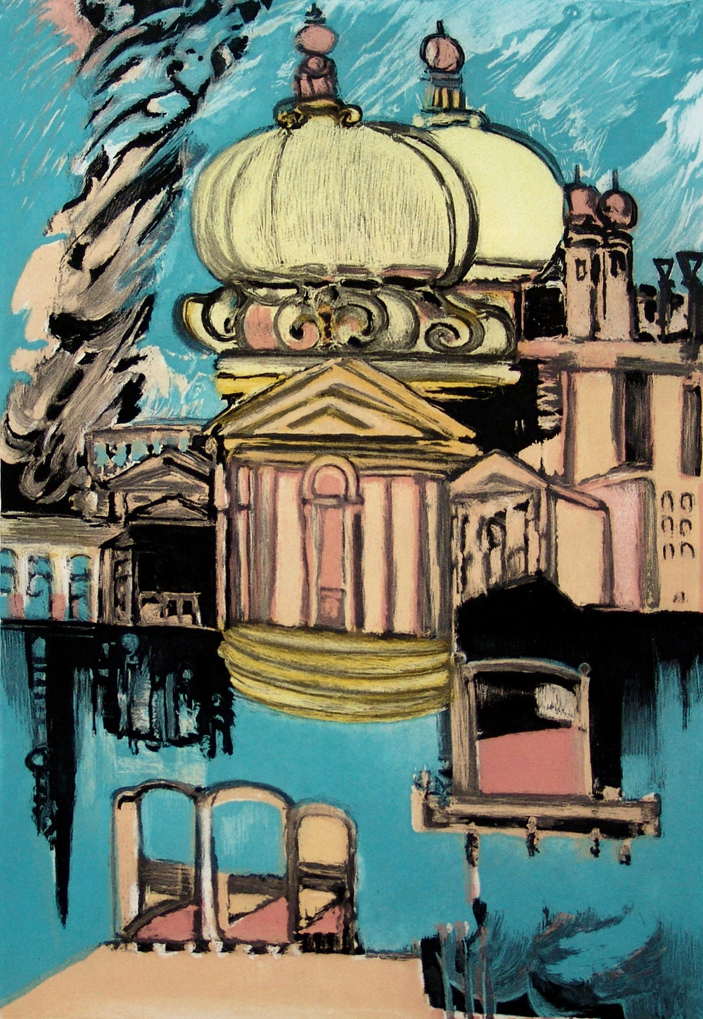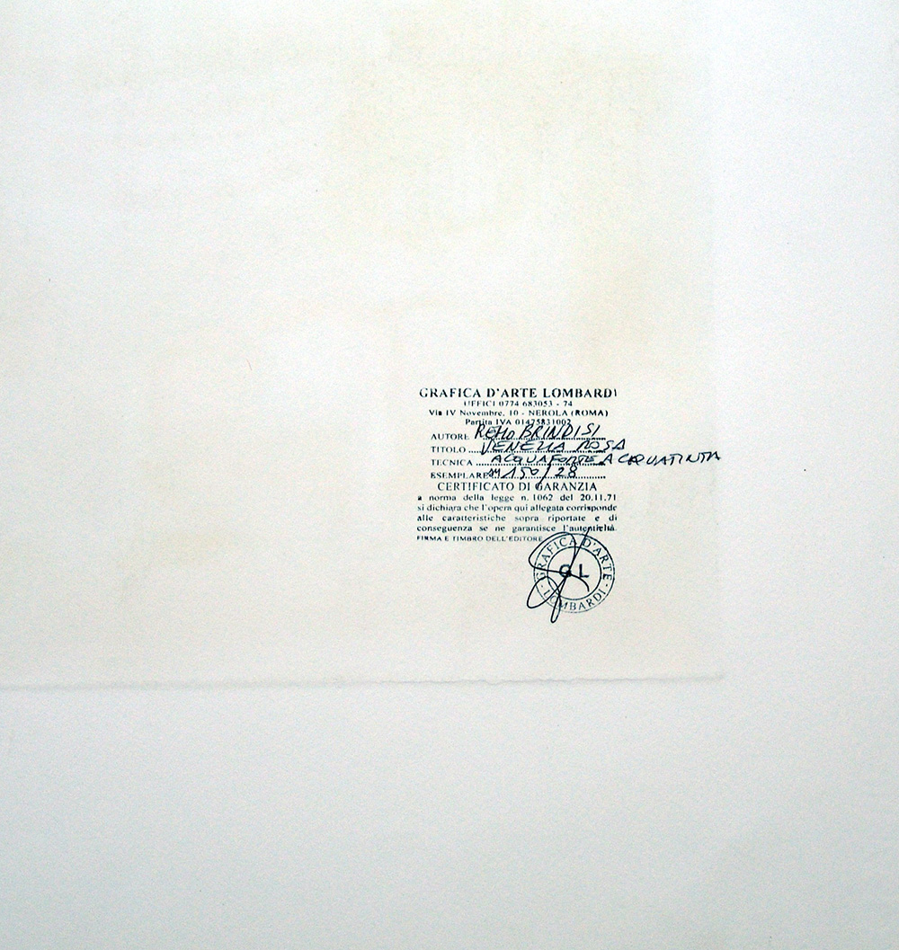 Remo Brindisi 1918, Roma (Rm) - 1996, Lido di Spina (Fe) - [Italia] Venezia rosa acquaforte acquatinta 80x60 cm es. 28/150; firma dell'artista in basso a destra certificato di autenticità della Grafica d'Arte Lombardi di Nerola sul retro