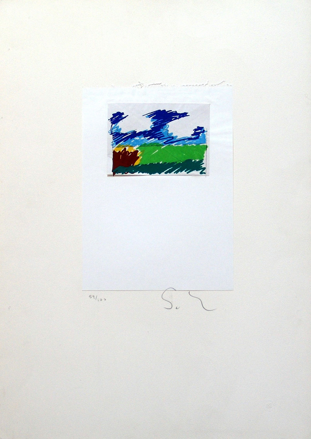 Mario Schifano 1934, Homs (Libia) - 1998, Roma (Rm) - [Italia] Paesaggio litografia 70x50 cm es. 59/100; firma dell'artista in basso e timbro "Il labirinto" di Roma in basso a destra certificato di autenticità Picenum