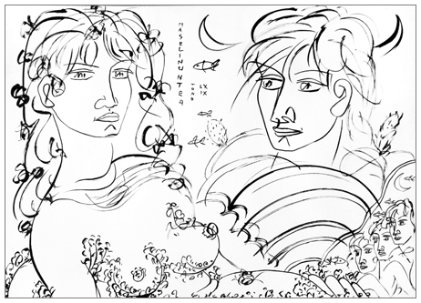 TONO ZANCANARO Padova 1906 – Padova 1985 Maselinuntea 1969 Inchiostro su carta 50 x 70. Titolo, firma e data in a. al c. (in verticale). B.A.: 150