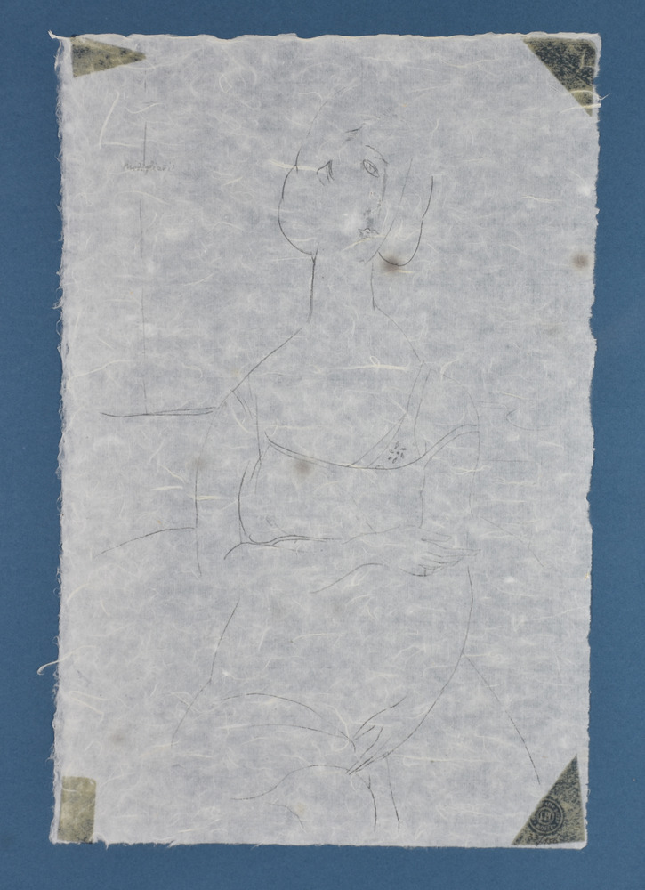 Modigliani Amedeo Nudo Femminile, 1912/13 litografia su carta di riso, cm 57x39 esemplare 11 su 150 sul fronte: firmata in lastra sul retro: etichetta con timbro dello Studio d'Arte Perna di Milano l'opera presenta tracce di nastro adesivo