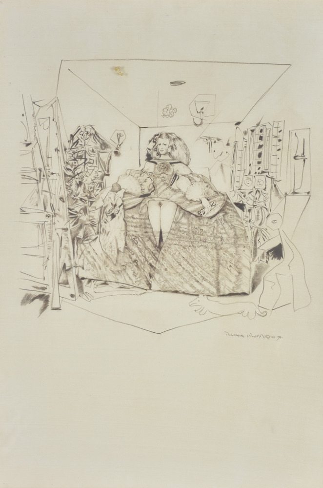 De Andreis Giovanni Battista Las Meninas disegno su carta applicato su tela, cm 65x45 sul fronte: firma e data eseguito nel 1981
