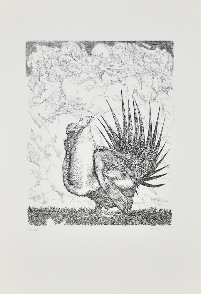 Abacuc Volatile incisione su carta, cm 50x35 (lastra cm 31,5x24,5) esemplare 3 di 100 sul fronte: firma