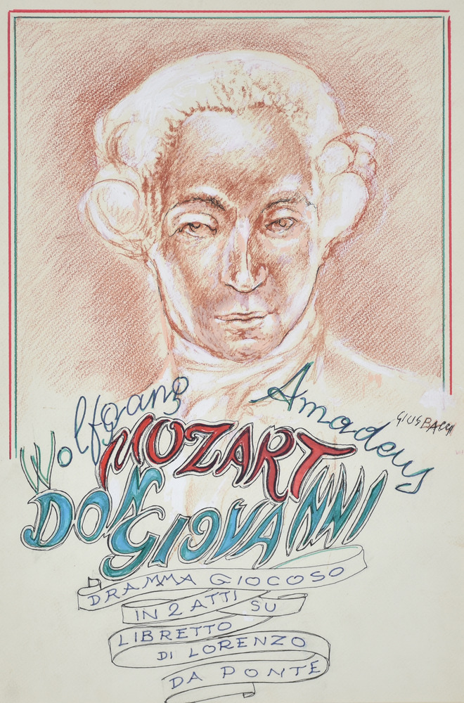 Bacci Giuseppe Locandina Teatrale - Don Giovanni, La Fenice, Venezia tempera e tecnica mista su carta, cm 50x35 sul fronte: firma sul retro: firma