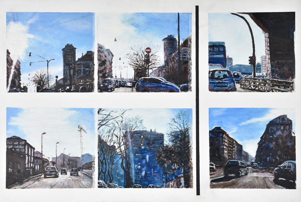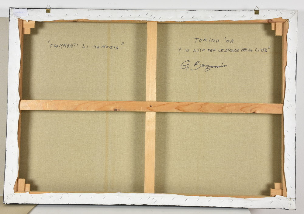 Gianni Bergamin FRAMMENTI DI MEMORIA - IN AUTO PER LE STRADE DELLA CITTA' olio su tela, cm. 75x110 sul retro: firma, data e titolo eseguito nel 2008 L’opera è accompagnata da autentica dell’artista su fotografia