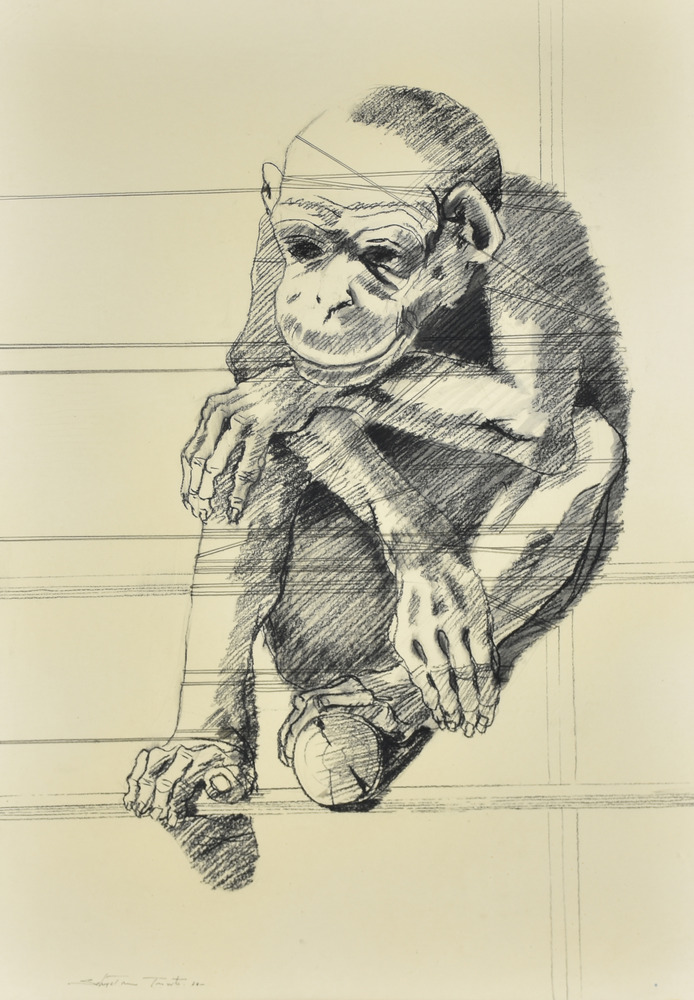 Trovato Sebastiano Scimmia carboncino su carta, cm 70x50 sul fronte: firma e data eseguito nel 1974