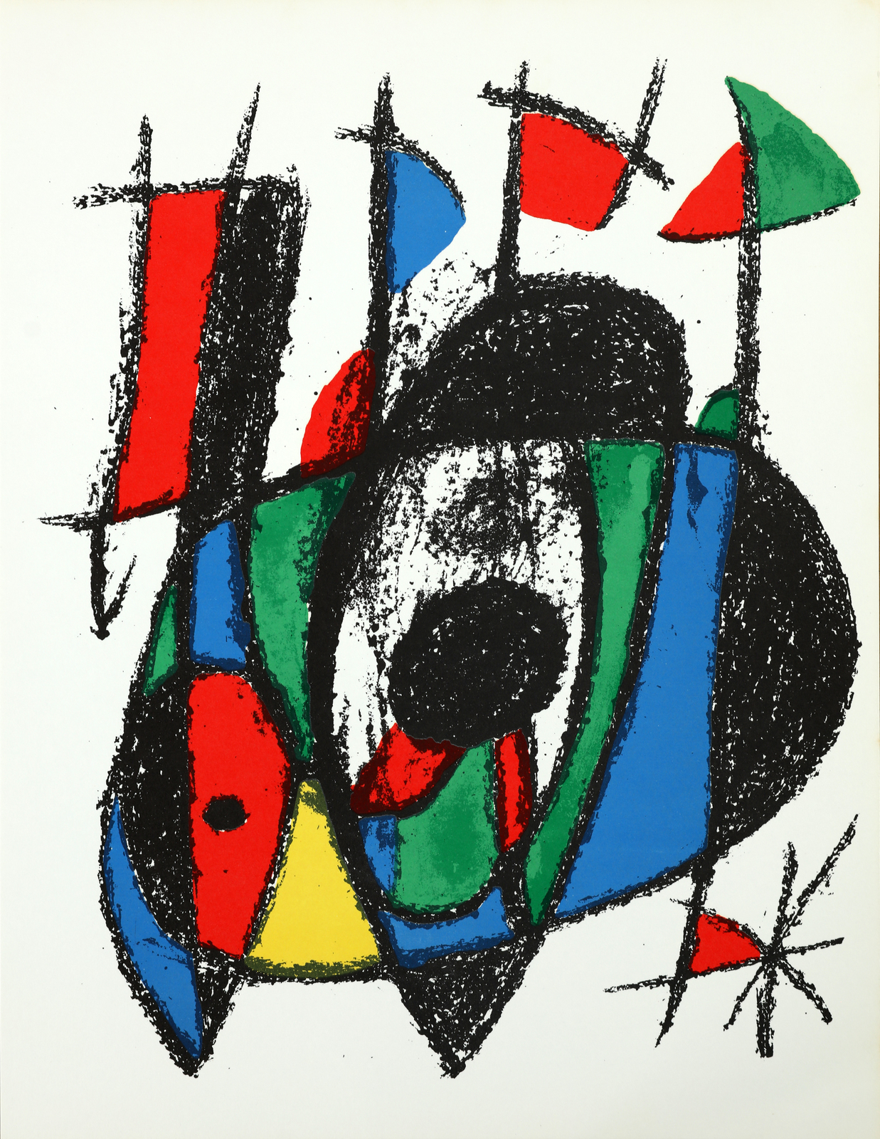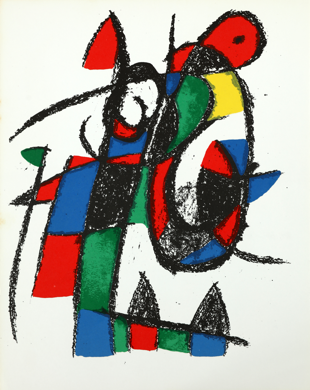 MIRO' JOAN (1893 - 1983) Lot composed of 4 sheets. Lithograph. Cm 26,00 x 38,00. At the back Graphis Arte, Livorno - Toninelli Modern Art, Milan guarantee stamp. 3 sheets size: 34 x 26 cm.