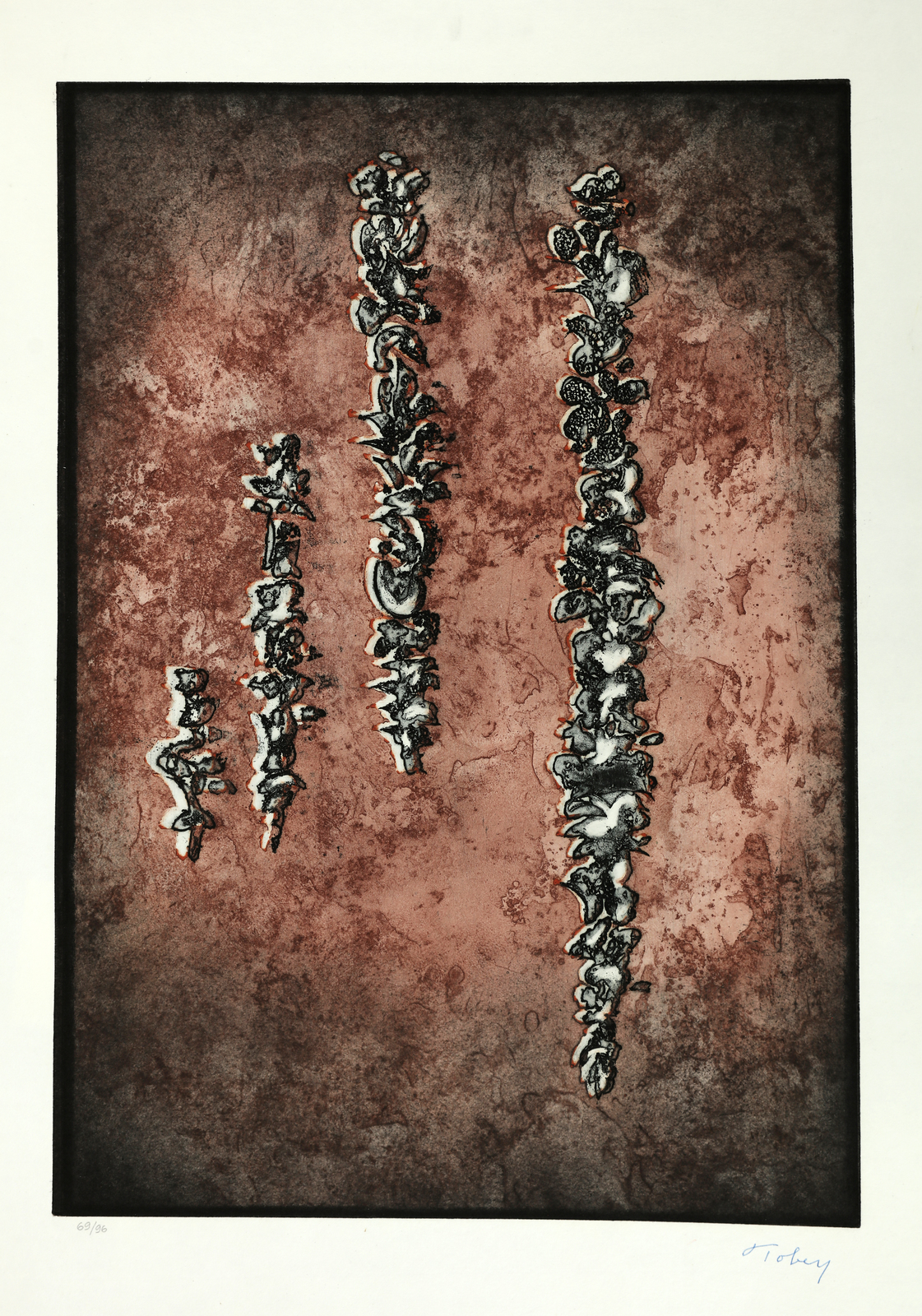 TOBEY MARK (1890 - 1976) Untitled. Etching. Cm 55,00 x 76,00. 69/96. Edition lower left in pencil and signature lower right in pen. Edition De Beauclair stamp lower left. Plate size: 60 x 42 cm.