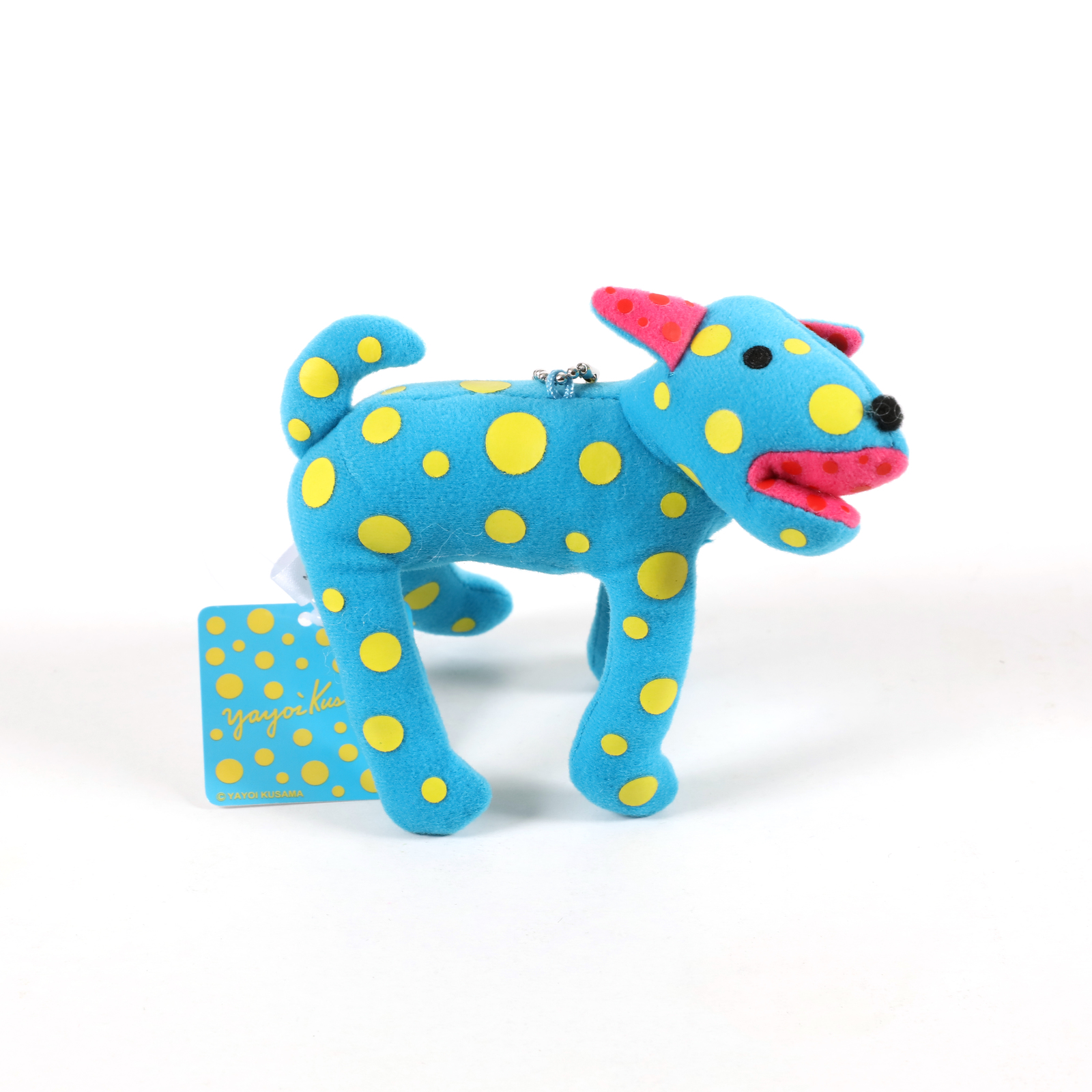 KUSAMA YAYOI (n. 1929) Lotto composto da n.2 oggetti. Pink dog. Blue dog. Tessuto. Cm 12,00 x 10,00.