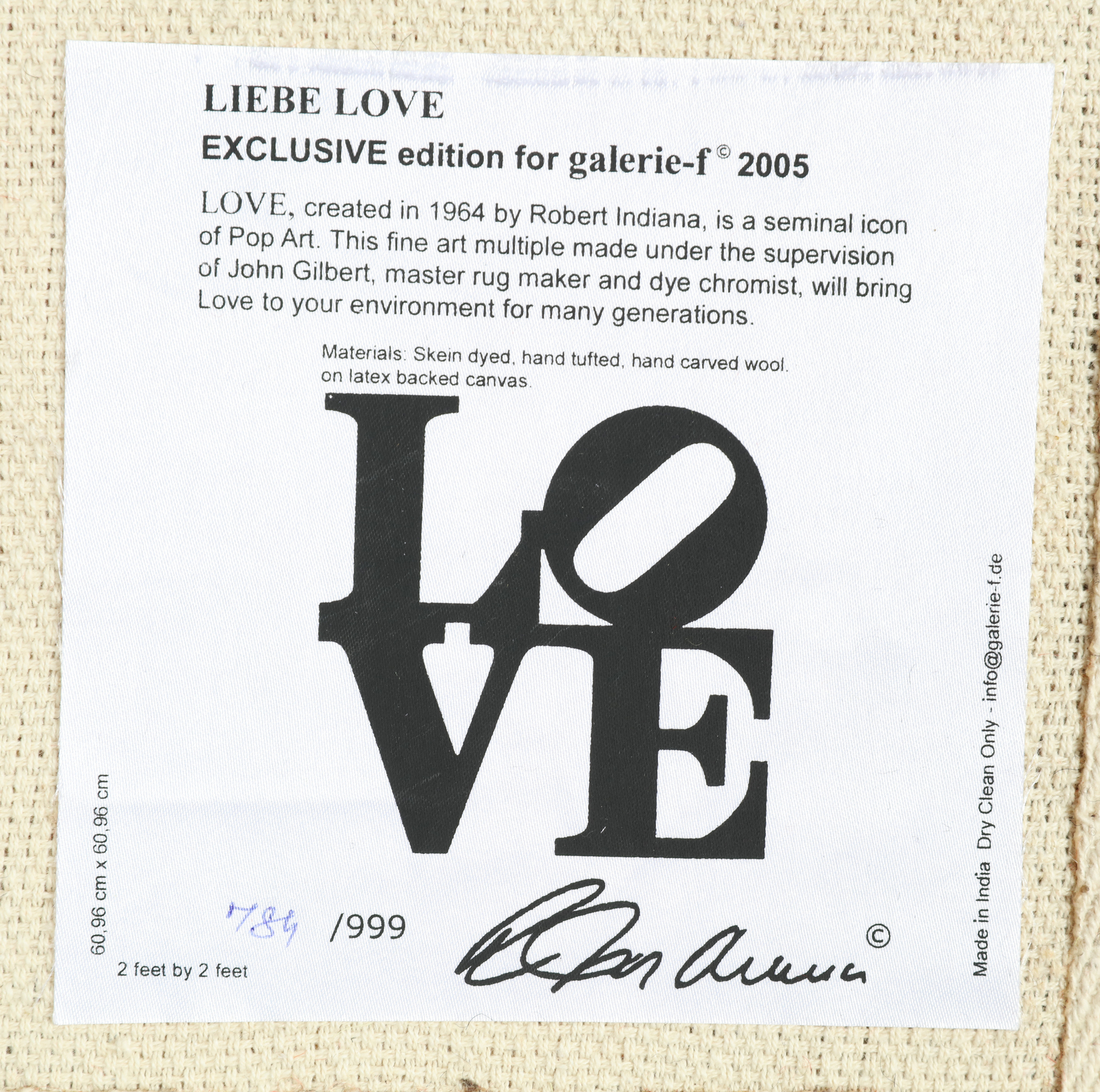 INDIANA ROBERT (n. 1928) Liebe Love. Tappeto. Cm 63,00 x 63,00. 784/999. Al...