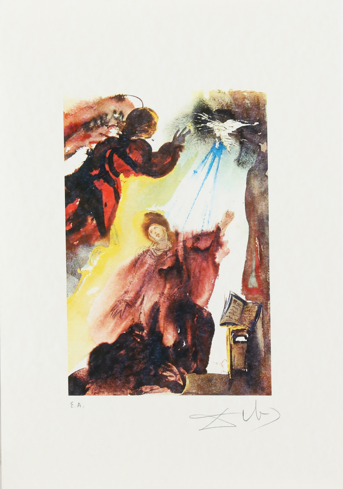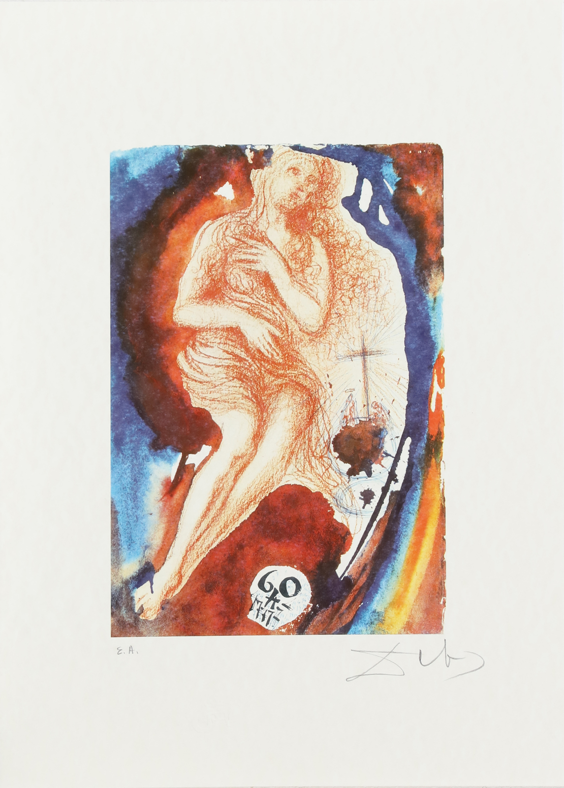DALI' SALVADOR (1904 - 1989) Untitled (#6). D'apres. Lithograph (complete folder). Cm 32,00 x 45,00. E.A. Signature and edition lower in pencil. Gaceta Espanola De Arte Contemporanea, Madrid, edirtion. 24 copies marked E.A. Plate dimension: cm 28,5x19,6. Blind stamp lower right.