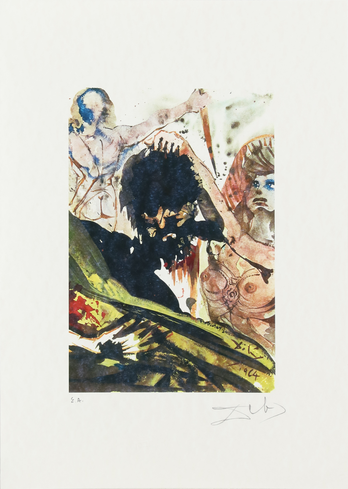 DALI' SALVADOR (1904 - 1989) Untitled (#6). D'apres. Lithograph (complete folder). Cm 32,00 x 45,00. E.A. Signature and edition lower in pencil. Gaceta Espanola De Arte Contemporanea, Madrid, edirtion. 24 copies marked E.A. Plate dimension: cm 28,5x19,6. Blind stamp lower right.