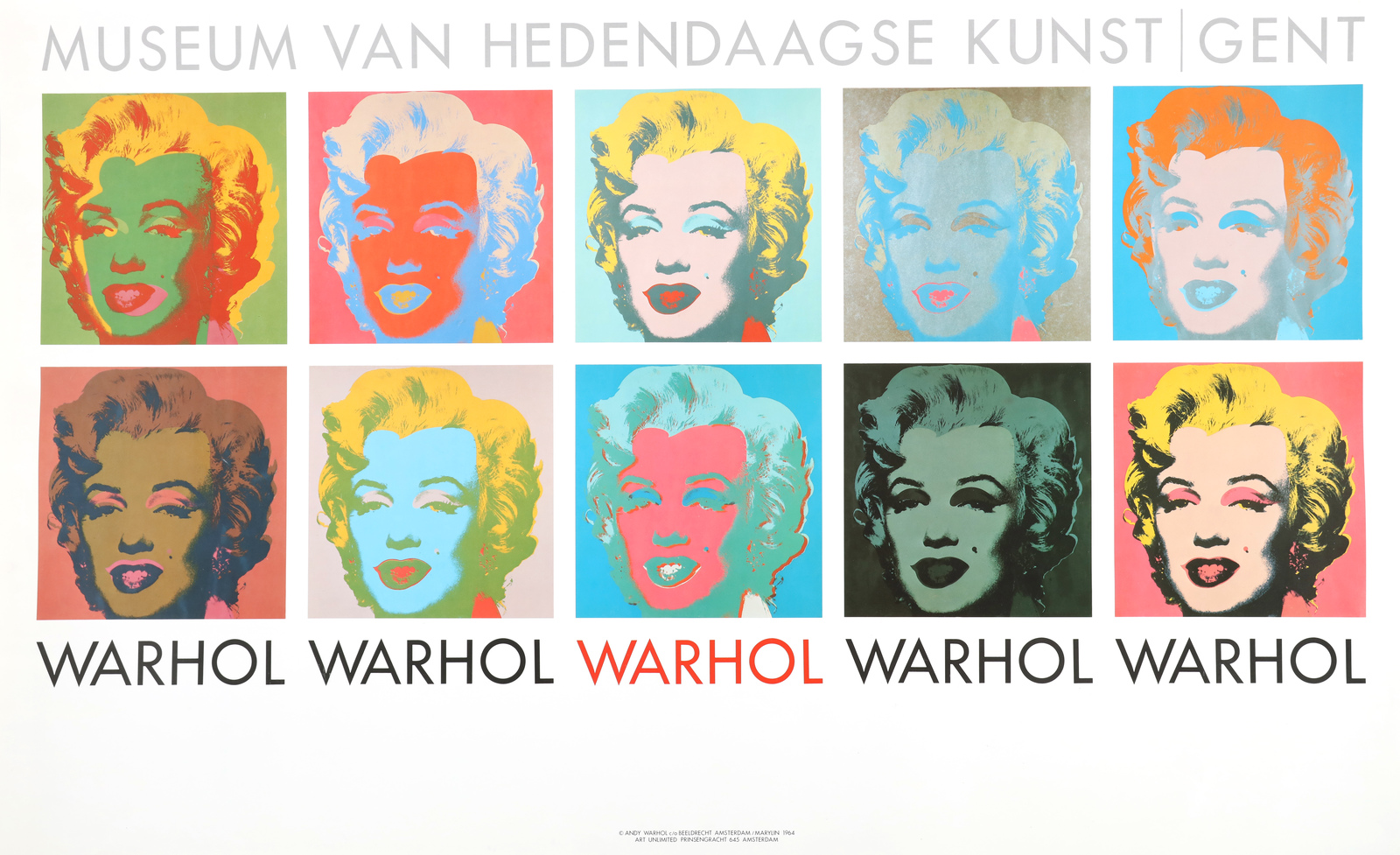 WARHOL ANDY (1928 - 1987) Warhol Warhol Warhol Warhol Warhol. Poster. Cm 96,00 x 60,00. Exhibition poster of Museum Van Hedendaagse Kunst,Gent.