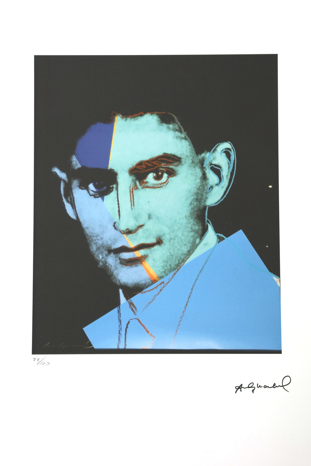 4. Franz Kafka. 41/100. Edition lower left in pencil and signature lower right in print. Arches paper, France; George Israel, Paris samps. At the back Leo Castelli New York stamps