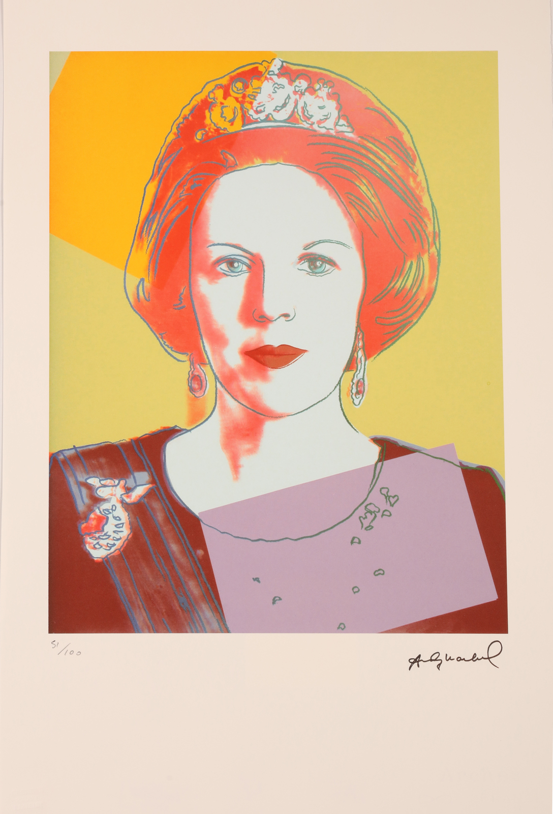 2. Queen Beatrix of the Netherlands: 81/100. Tiratura a matita in basso a sinistra e firma a stampa in basso a destra. Carta Arches, France; Timbro a secco editore George Israel, Paris e al retro timbri Leo Castelli, New York.