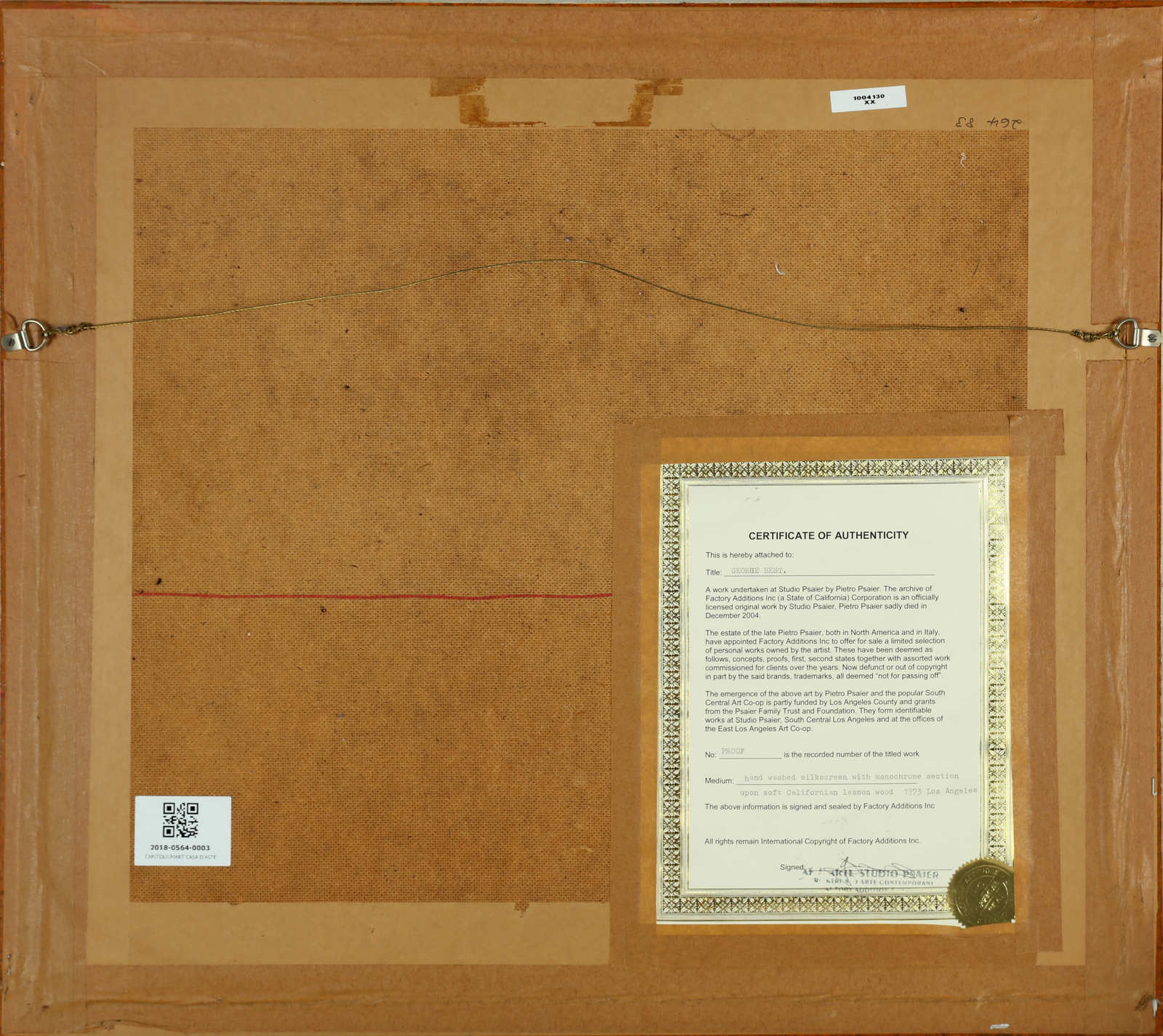 PSAIER PIETRO (1939 - 2004) George best. 1973. Silkscreen print on wood.. Cm 43,00 x 35,50. P.a. Edition, signature and year lower. At the back authenticity certificate with artist's stamp and signature. Cornice presente