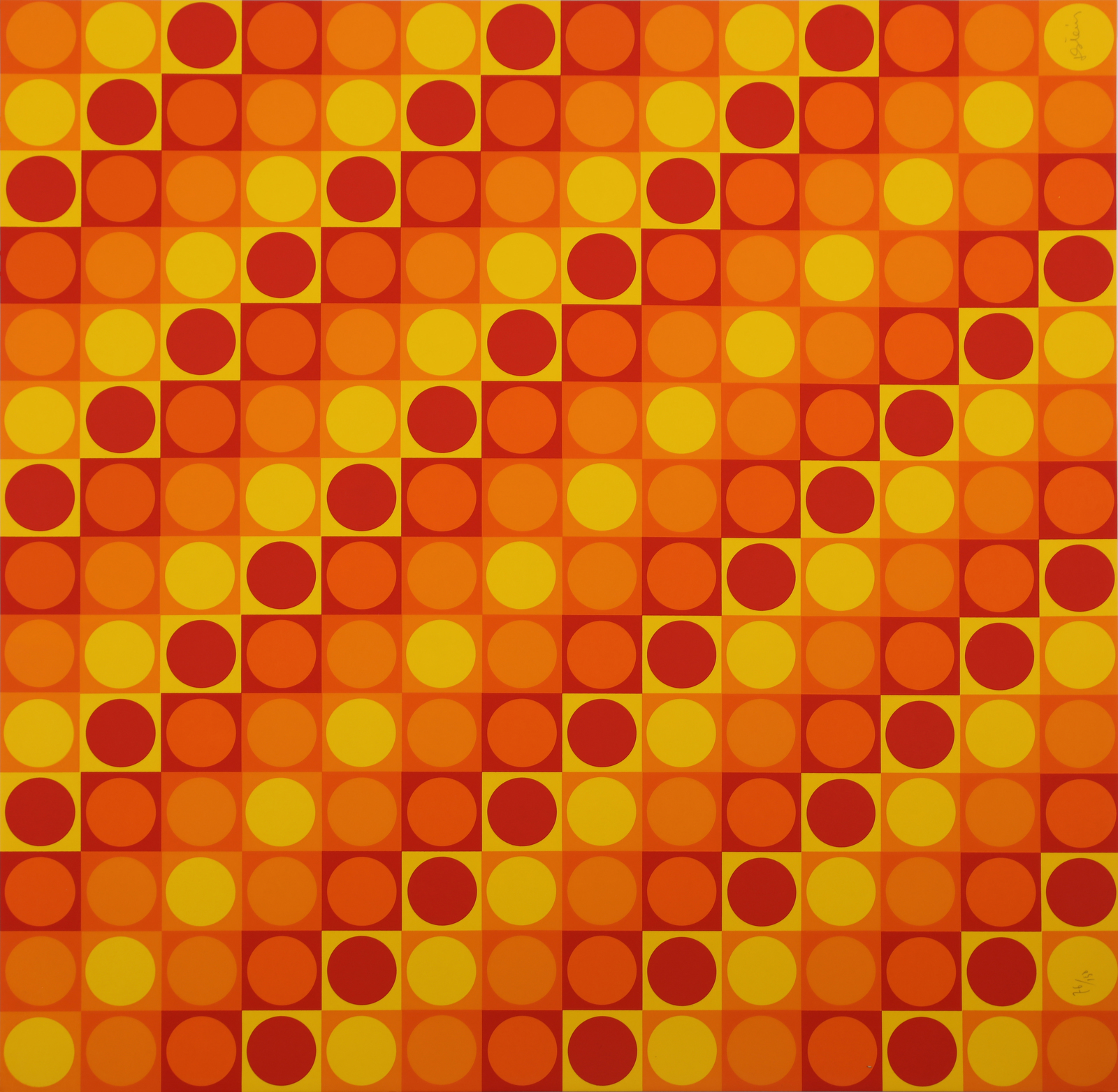 GRAV (Groupe de Recherche d'Art Visuel) Grav, Groupe de recherche d'art visuel 1960-1968 (#6). 1975. Silkscreen (complete folder). Cm 70,00 x 70,00. 76/150. Folder realized for the retrospective exhibition of the Groupe de Recherche d'Art Visuel ( Garcia Rossi, Le Parc, Morellet, Sobrino, Stein, Yvaral), Como Lake, September 1975, curated by Luciano Caramel. Each piece has signature and edition lower in pencil.