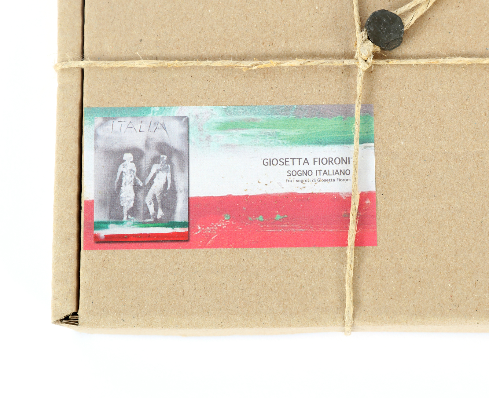 FIORONI GIOSETTA (n. 1932) Sogno italiano fra i segreti di Giosetta Fioroni. . Scatola chiusa e sigillata. Cm 21,00 x 17,50 x 3,00. Timbro Spazio Contemporanea, Moncalvo (AT).