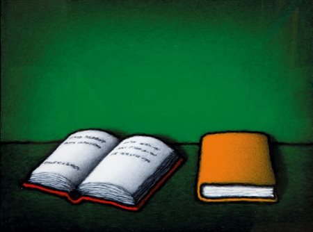 STEFANONI TINO Lecco 1937 "Libri" 1991 30x40 olio su tela Opera firmata e...