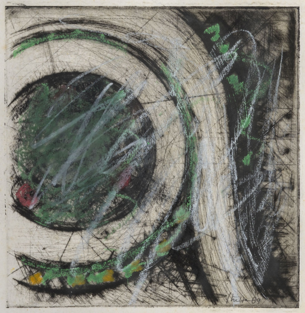 GUIDO STRAZZA (1922) Cosmate 1989 Tecnica mista, acquaforte e pastello su...
