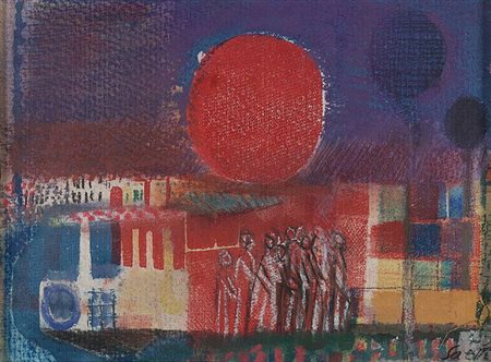 SAETTI BRUNO Bologna 1902 - 1984 "Paesaggio" 35x47 tecnica mista su cartone...