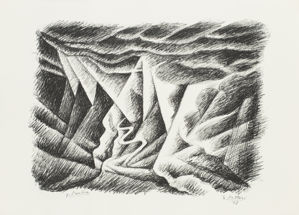 GERARDO DOTTORI (1884-1977)Uragano, 1969Litografia in bianco e nerocm...