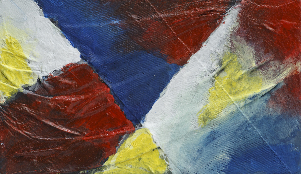 Acrilici, tecnica mista e applicazioni di juta su tavola