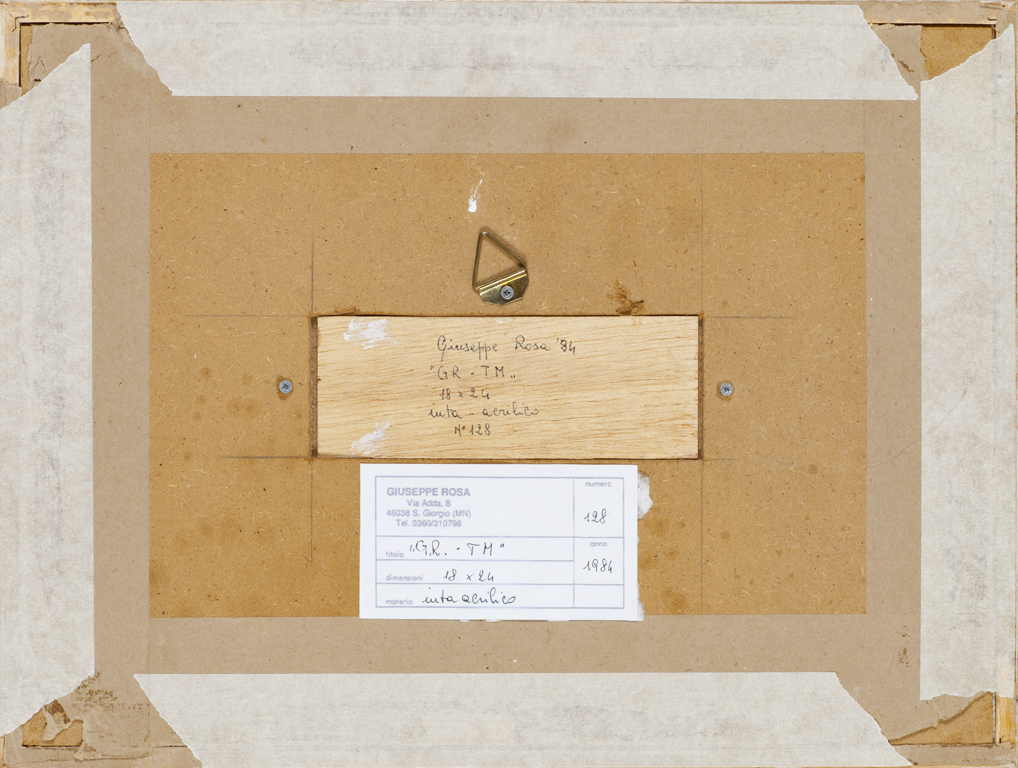 GIUSEPPE ROSA (1948)GR-TM, 1984Acrilici, tecnica mista e applicazioni di juta...