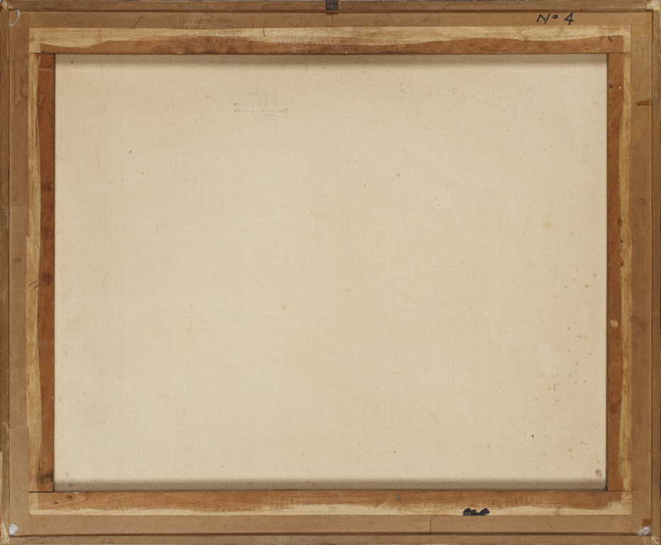 Timbri della Galleria Arte Centro (MI) al retro sulla tela e sul telaio