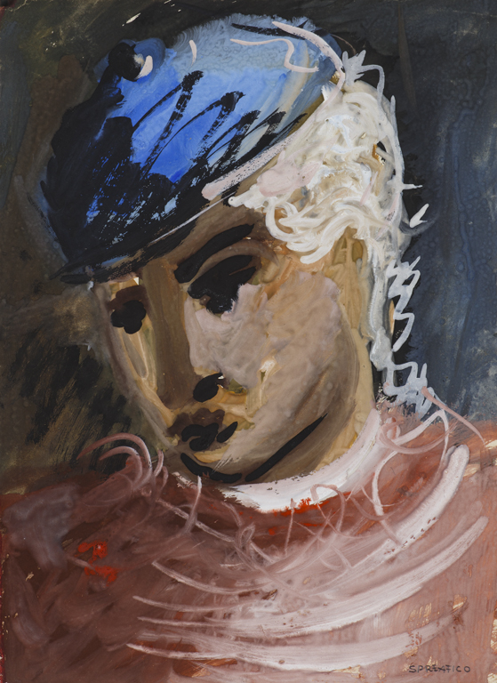 LEONARDO SPREAFICO (1907-1974)Testa di giovane con berretto bleu, 1965Tempera...