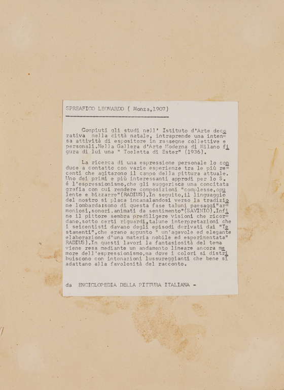 Certificato di provenienza a cura della Galleria d'Arte Ponte Rosso (MI)