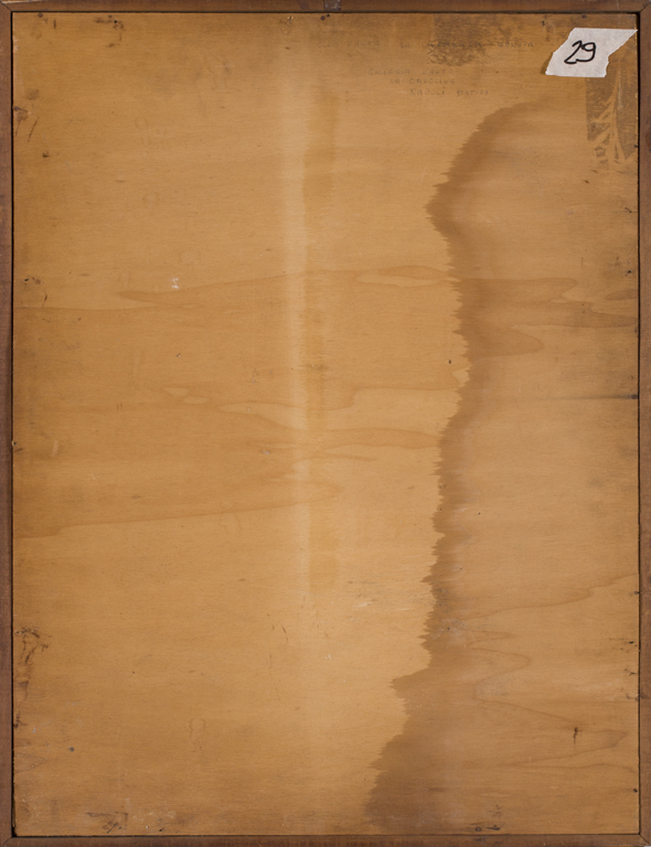 Iscrizione "Club d'Arte La Carabaga - Genova e Galleria d'Arte La Carolina - Napoli" al retro