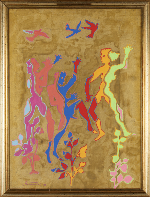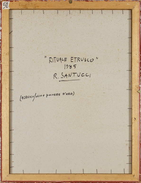 ROMANO SANTUCCI (1934)Rituale Etrusco, 1985Acrilici, olio e polvere d'oro su...