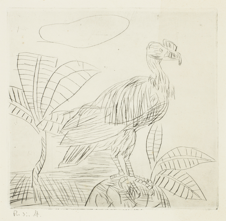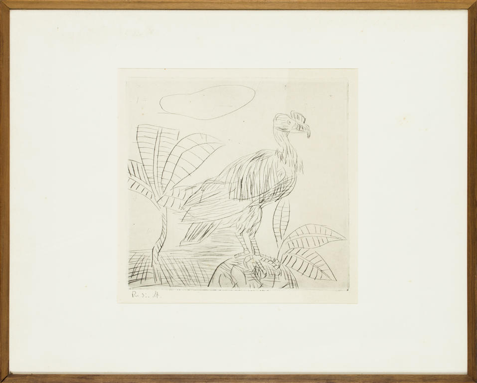 Etichetta stampata "La presente acquaforte non è firmata dall'artista in quanto Antonio Ligabue è degente, paralizzato, presso l' Ospedale di Gualtieri. Pertanto l'acquaforte è stata tirata, controllata, numerata e firmata dalla Galleria d'Arte La Barcaccia di Reggio Emilia" al retro
