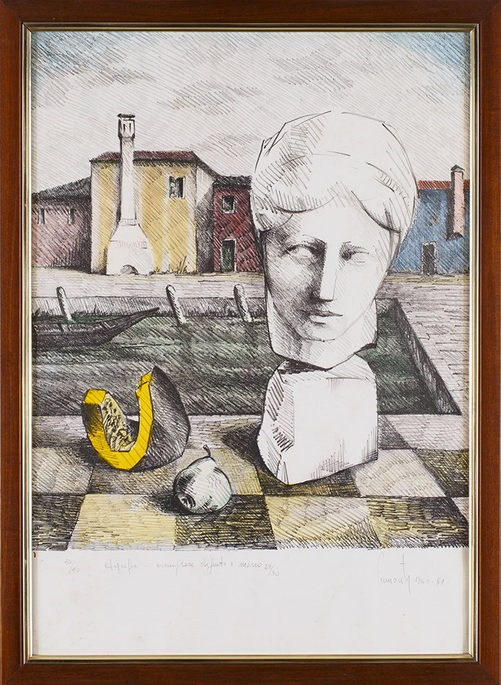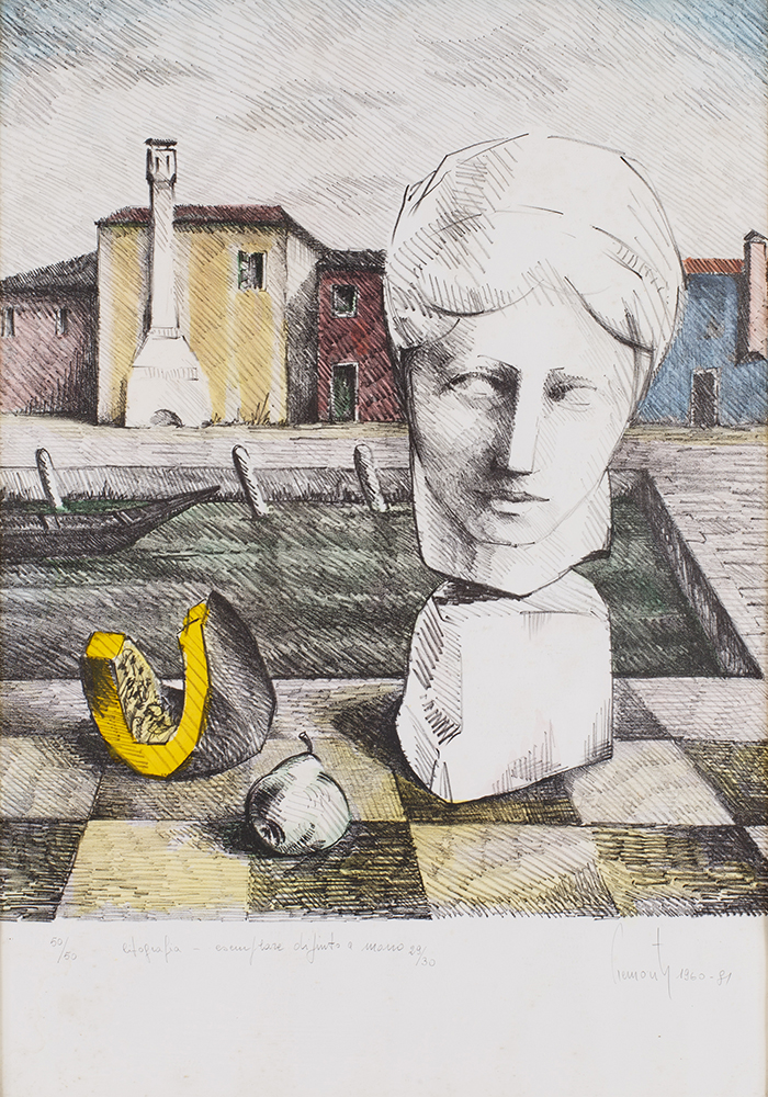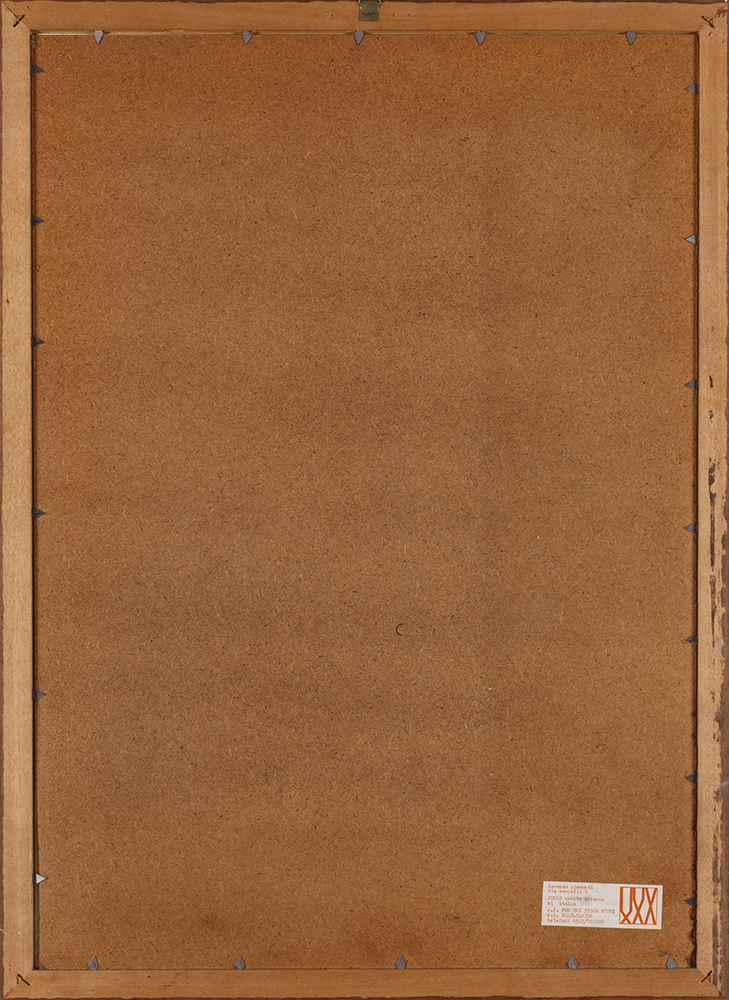 Iscrizione "Litografia - esemplare dipinto a mano 29/30" a matita al fronte