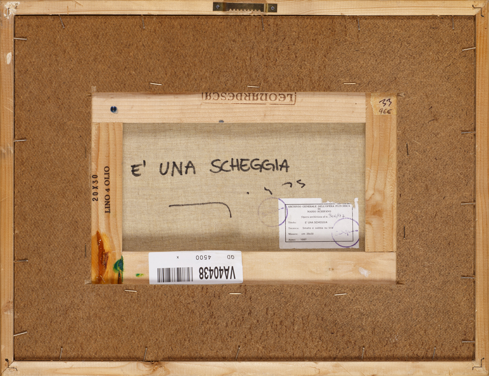 Etichetta e timbri dell'Archivio Generale dell'Opera Pittorica di Mario Schifano - Fondazione Mario Schifano al retro