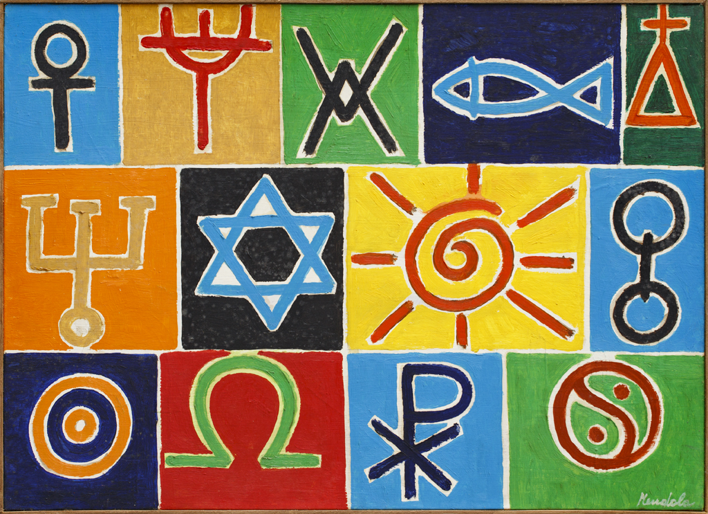 ROSOLINO MENDOLA (1949)Segni spiritualiOlio su telacm 50x70Firma al...